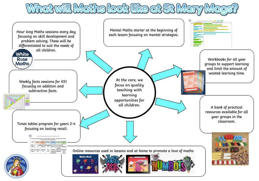 At St Mary Magdalene, we aim to deliver an inspiring, exciting and challenging curriculum, which fosters a life-long love of mathematics and develops all children into mathematical thinkers.