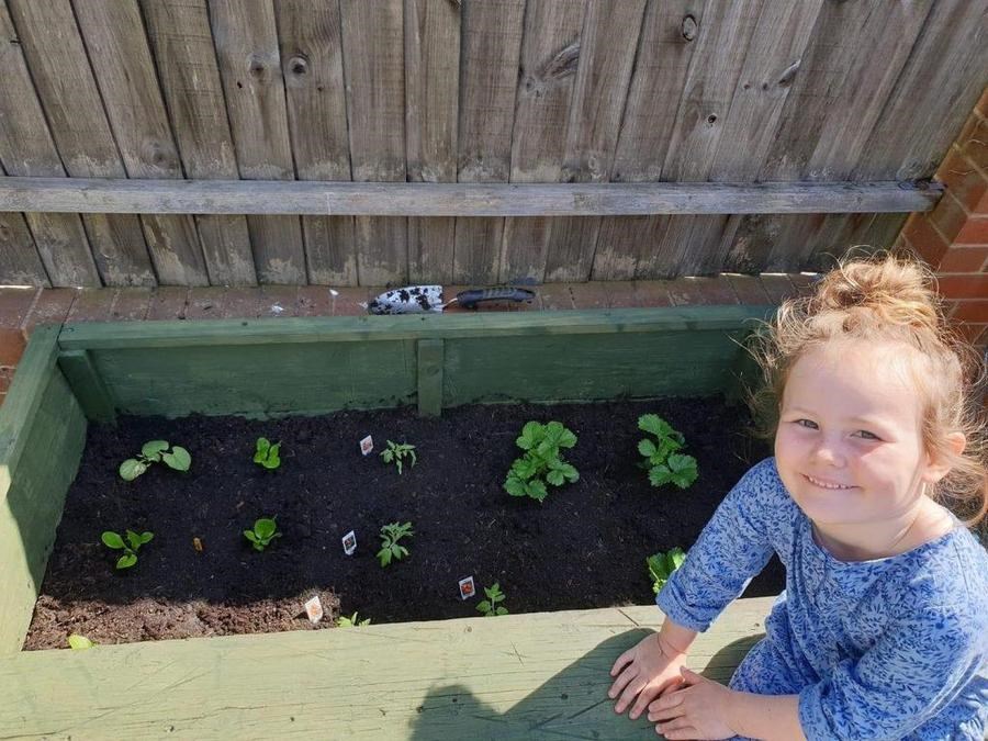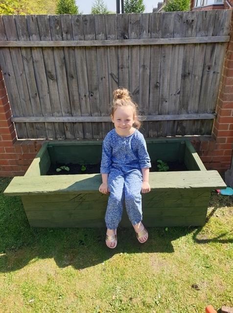Caila built a vegetable patch with her daddy!
