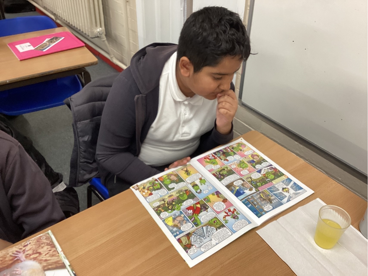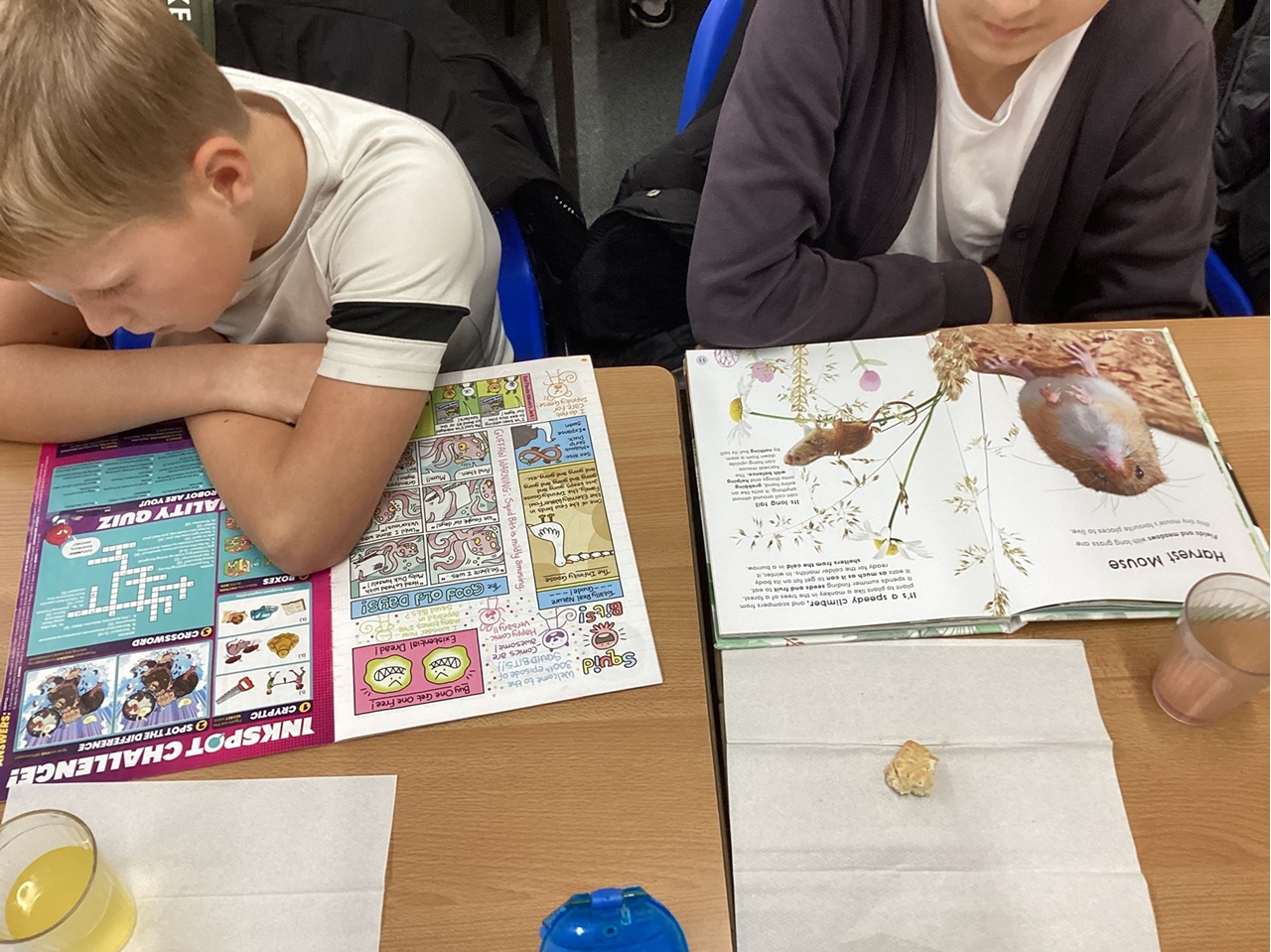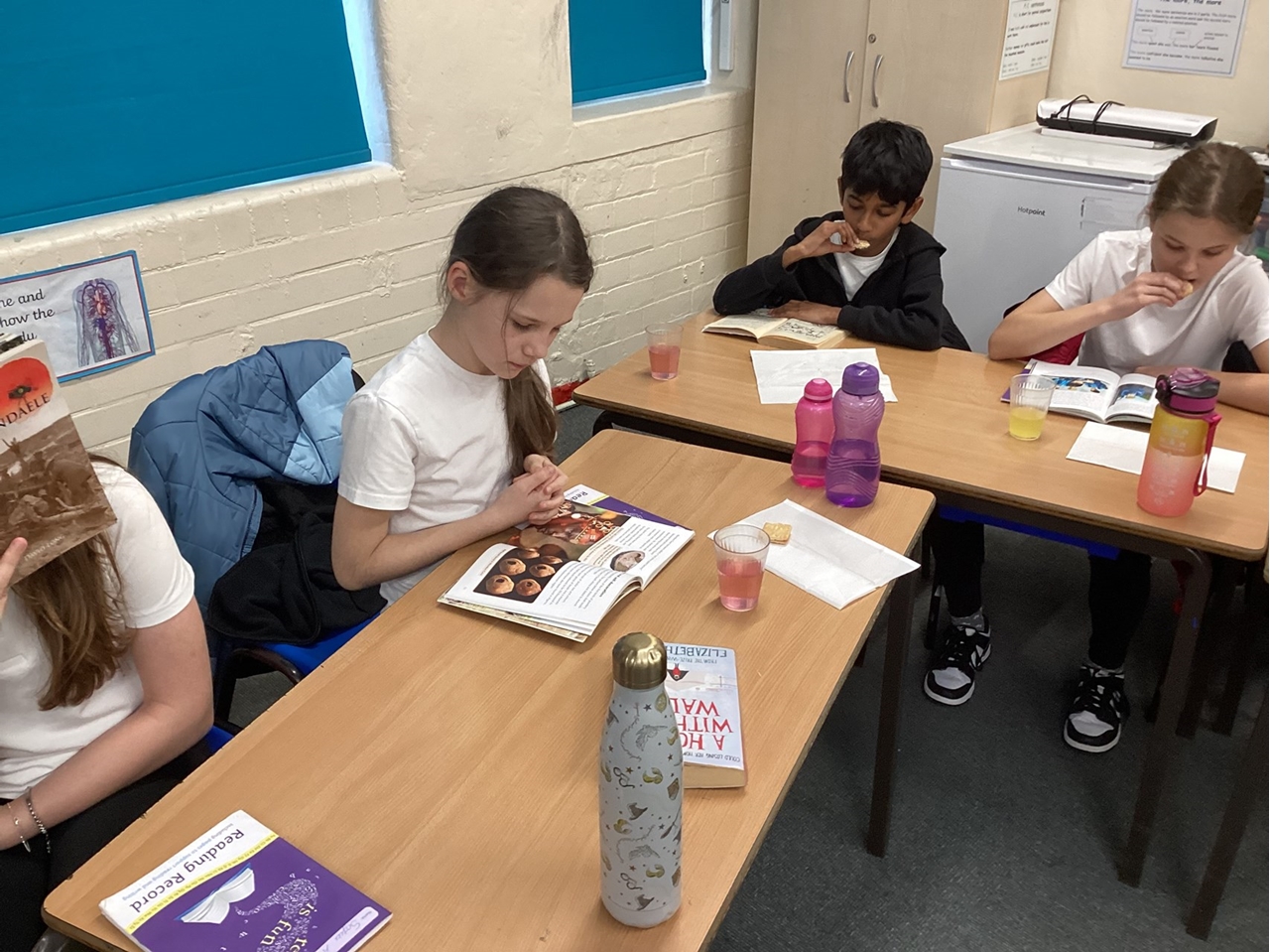 Year 6 children enjoyed reading with the younger children today. Children had some time out of class to support readers across the school with their reading. In the afternoon, we enjoyed some of our own reading time with a biscuit and juice.